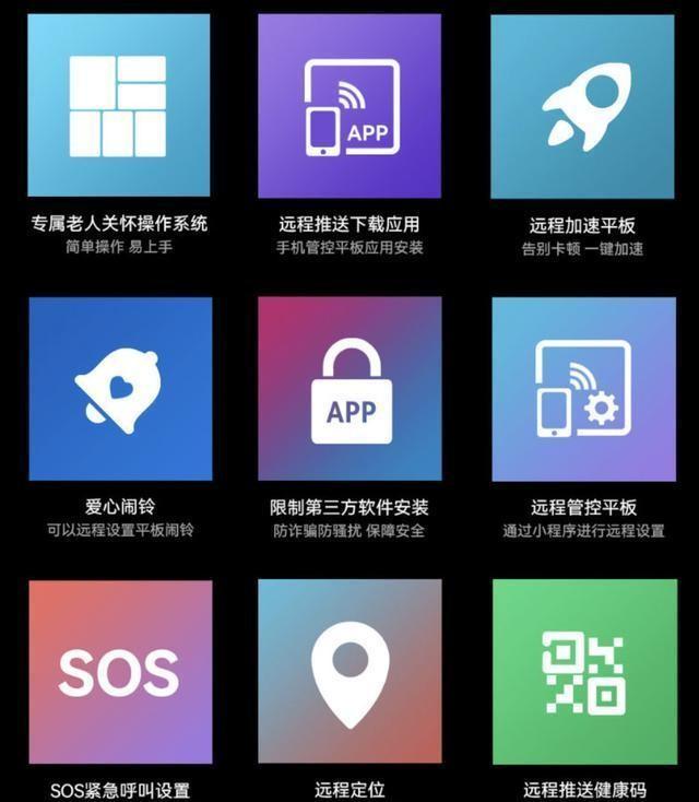 对于老年人智能手机和平板电脑的操作往往过于复杂。酷比魔方老人版系统采用九宫格布局,简化了操作界面。“远程推送下载应用”、“远程加速平板”、“远程设置闹铃”等功能,方便子女远程协助老人使用设备。而“限制第三方应用安装”、“远程管控平板”、“远程定位”、“一键SOS呼叫”等功能,则着眼于老年人的安全需求,试图为他们构建一个更安全、便捷的数字环境。这些功能是否真的实用?会不会反而增加老年人的学习成本?如何平衡功能的丰富性与操作的简易性,是厂商需要认真思考的问题。