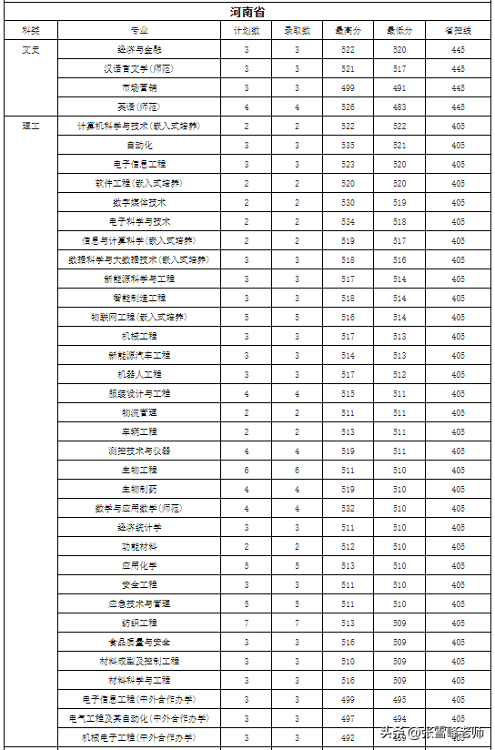 校坚持开放办学,与美国、英国、德国、日本、芬兰、韩国等国家和中国香港、澳门、台湾地区的90多所高等院校建立了友好合作关系。分别与德国北黑森应用技术大学、德国米特韦达应用技术大学、英国利物浦约翰摩尔大学联合开展机械电子工程、电气工程及其自动化和电子信息工程专业等3个中外合作办学项目(双学位)。与美国南伊利诺伊大学爱德华兹维尔分校,威斯康星大学斯托特分校,威斯康星大学欧克莱尔分校合作开展经济与金融、材料科学与工程、软件工程、食品质量与安全、机器人工程专业等5个中美学分互认联合培养项目(双学位)。2022年河南省录取分数如下表所示(其他省份详见官网)