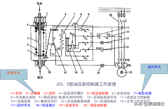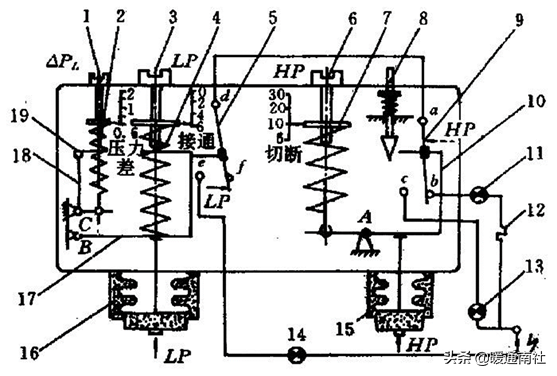 (油)压差控制器:用润滑油泵吸排压差作为控制信号的电开关,当压差小于设定值时,使压缩机停车,起保护作用。