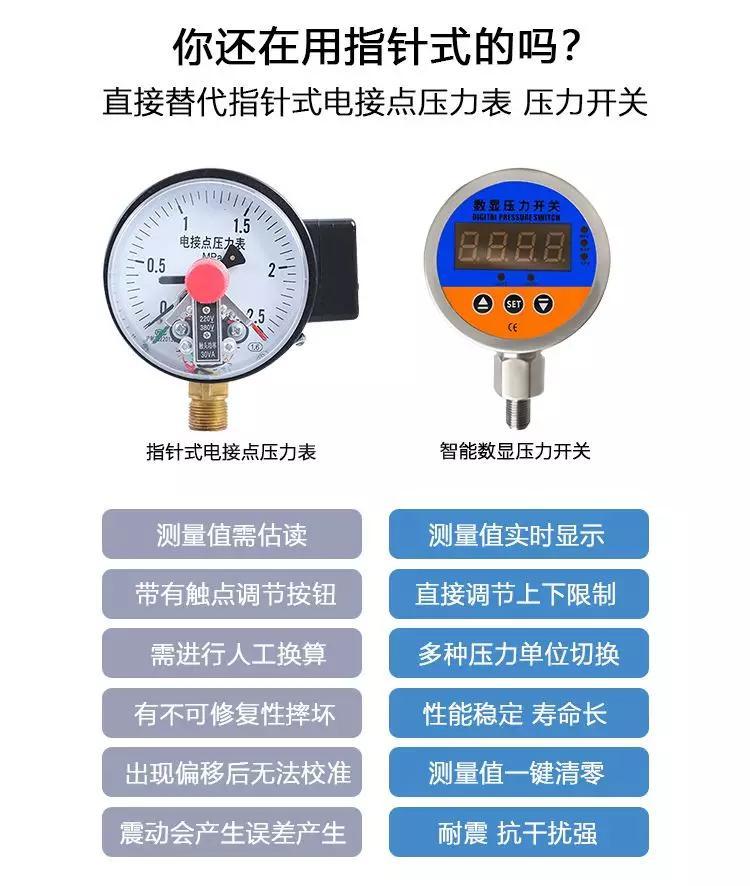 指针式电接点压力表与智能数显压力开关的对比