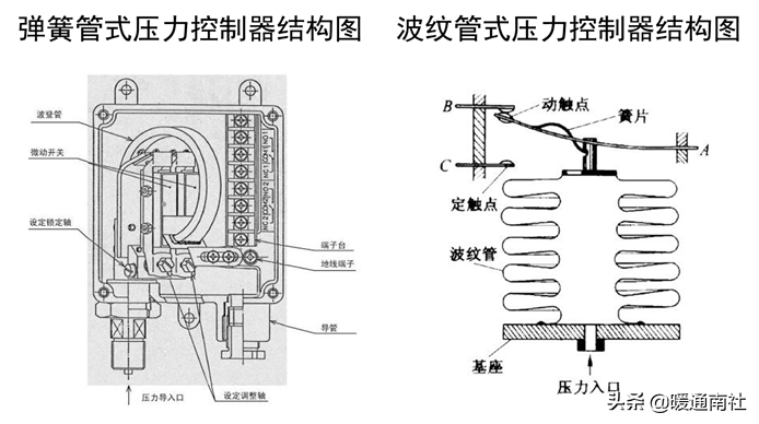 压力开关根据传感元件可分为:圈弹簧管压力开关、膜片压力开关、膜盒压力开关及波纹管压力开关等。