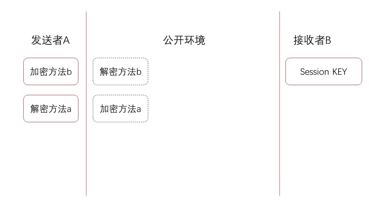 通俗的解释:A要给B发信息,B先把一个箱子给A,A收到之后把信放进箱子,然后上锁,上锁了之后A自己也打不开,取不出来了,因为钥匙在B的手里,这样即使路上被截取了,别人也打不开箱子看里面的信息,最后B就能安全地收到A发的信了,并且信息没有泄露。