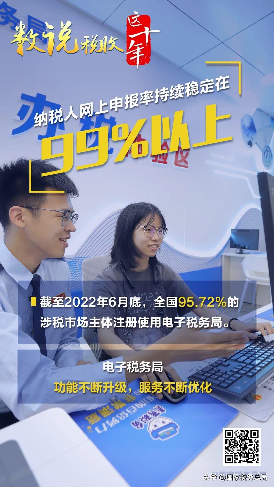数说税收这十年丨电子税务局功能不断升级!纳税人网上申报率持续稳定在99%以上