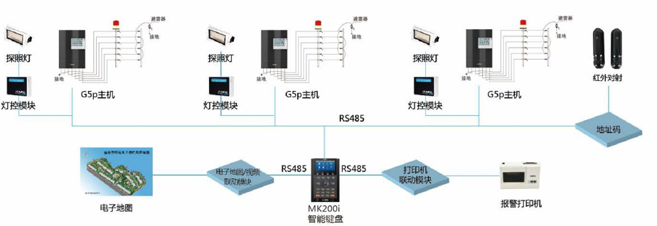 报警系统配置灯控模块,在远程智能控制终端或上层软件平台上即可实现周界探照灯的打开 和关闭,为夜间故障排查和巡逻检查提供灯光照明。同时当周界防区报警时对应的探照灯同步打开,给摄像机补光,使后端更清晰快速地了解警情。