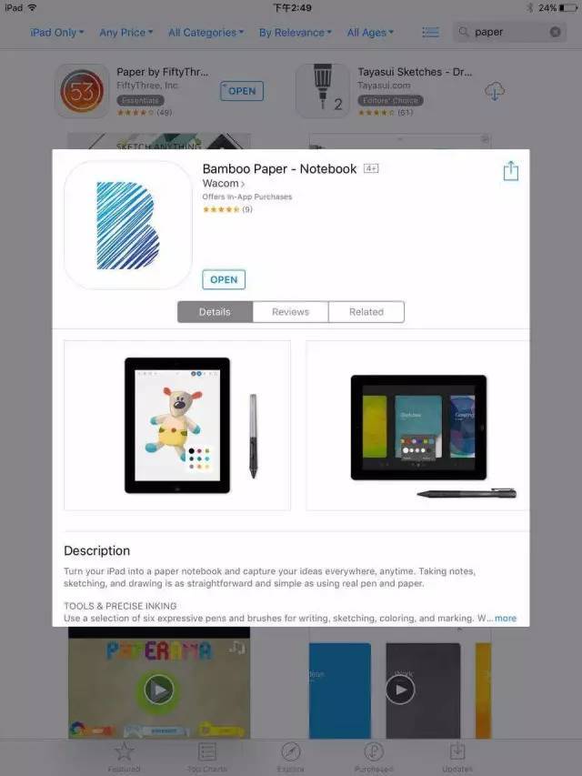 第二个,是我最早用的paper(by Wacom)。当时安利53来着,结果先下载了Wacom出的绘图App。(画头像我通常都用这个)