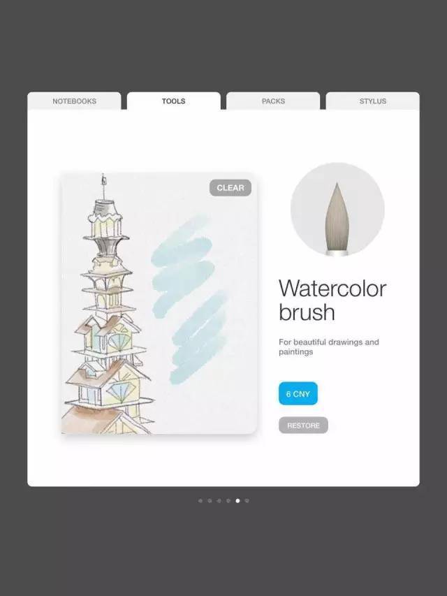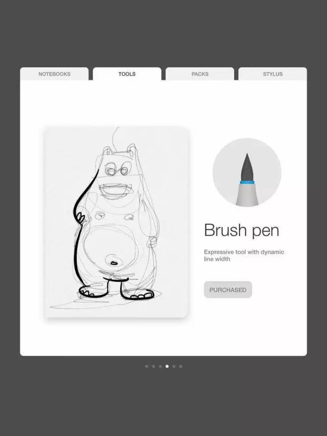 Paper的免费版有两个笔刷和一个本子,画简单的头像完全够用。其他笔刷是6块钱/个,禁不住诱惑,买了全部的笔刷。App里面还售卖背景色不同的本子,这个没买,感觉用处不大。