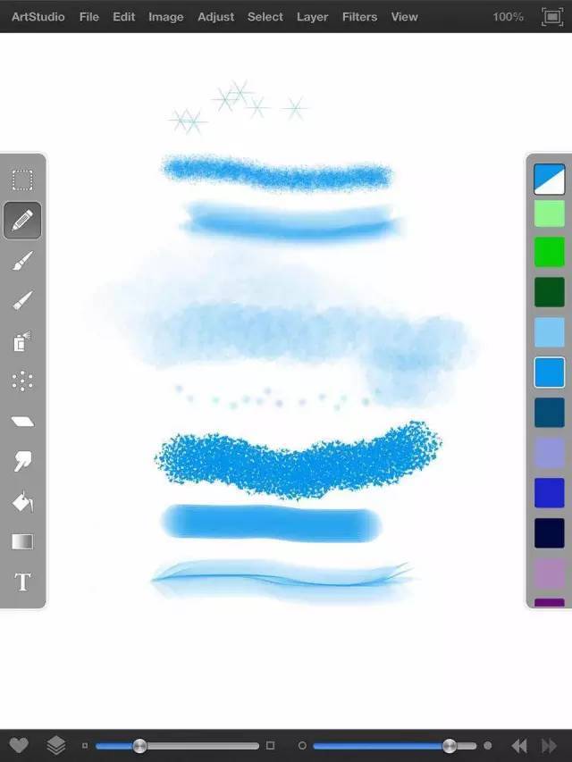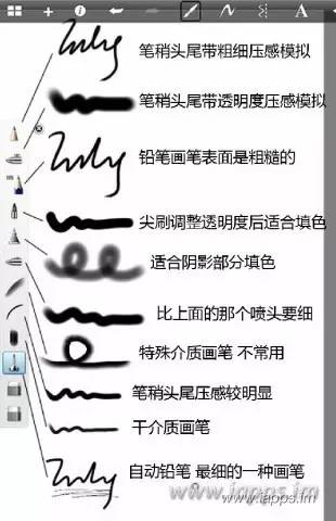 45多种预置画笔,内含铅笔、喷头、排笔等常用画笔,还有干湿介质画笔,最赞的是它有15种铅笔可供选择,每一种笔都能调整粗细和透明度。