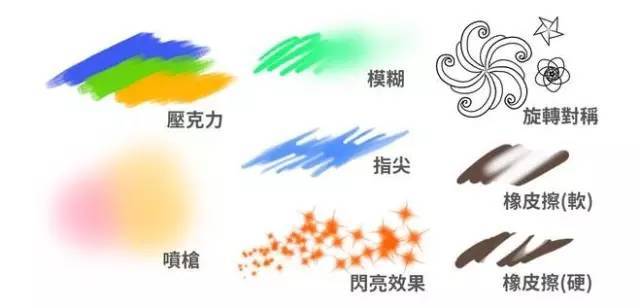 仿手绘效果逼真,笔刷工具分为铅笔,毛笔,马克笔,制图笔,水彩笔,油画笔,喷枪等,自定义选择式界面方式。