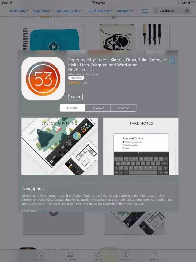 平板钱钱钱前五个 App 由我的好朋友「水彩画」友情提供测评。它们是53 、WacomPaper 、Zen Brush 、最近很火的atrstudio (中间没有空格)和procreate 。