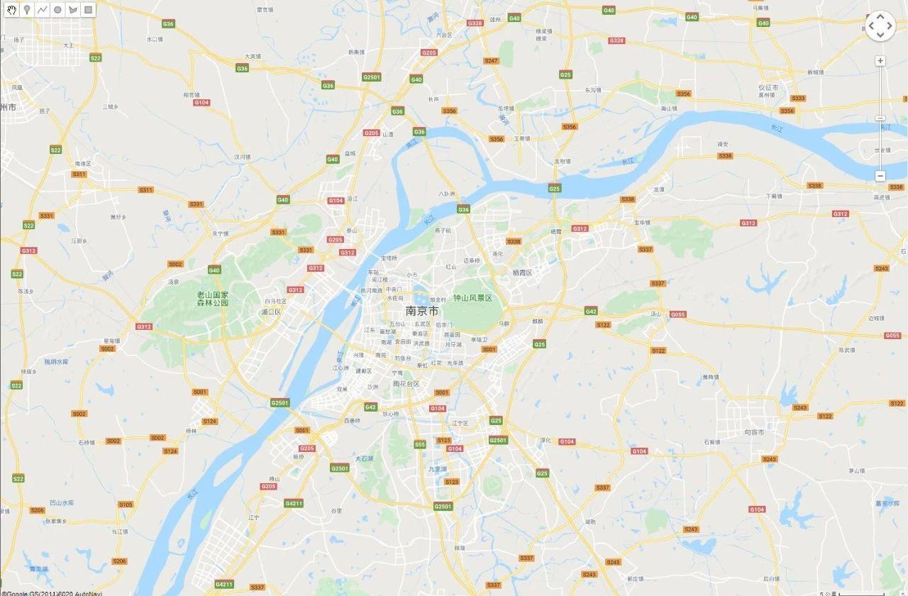 以南京雨花台区为例,地图页面的蓝框 就是到处下载的范围,一般我们都用矩形的,用左上角的绘制面板中的绘制矩形 制作我们需要的部分