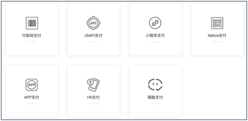 这里主要指我们在什么模式下去发起支付,包括线上场景和线下场景两大类: