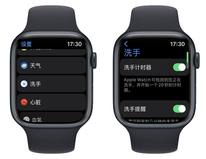 在 watchOS 7 更新后,Apple Watch S4 及以上版本拥有了洗手计时器的功能,在设置中找到「洗手」开启即可。