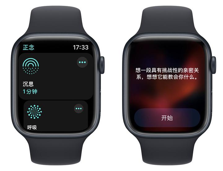 说到 watchOS 7 新增的洗手计时器,那怎么能忘记 watchOS 8 新增的正念功能?在 watchOS 8 中,呼吸升级成了正念,你可以通过沉思功能,进行一分钟短暂的思考,坚定目标,继续努力。