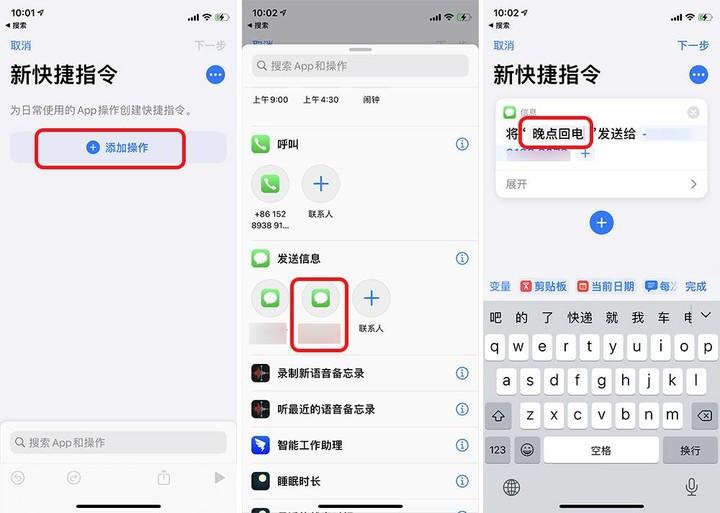 当然,这些快捷指令同样可以添加到模块表盘中,实现一键发短信、一键开关灯。