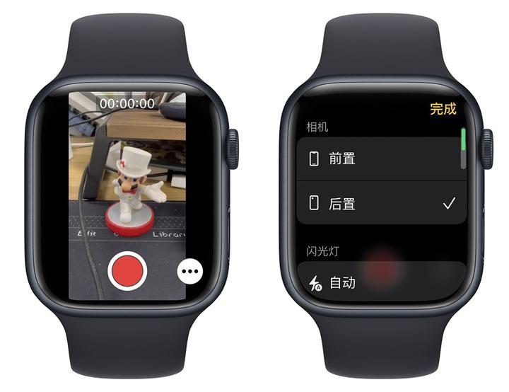 遥控拍照,合照利器虽然 Apple Watch 没有摄像头,但它可以作为 iPhone 的相机遥控器,Apple Watch 支持延时、选择摄像头以及开关闪光灯,合影、自拍时很实用。
