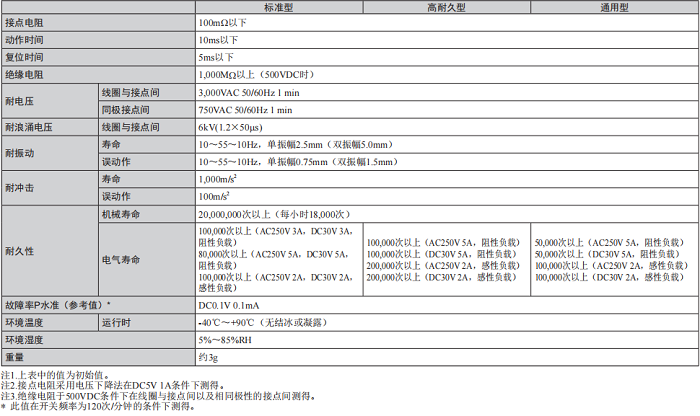 图3:G6DN系列继电器性能参数