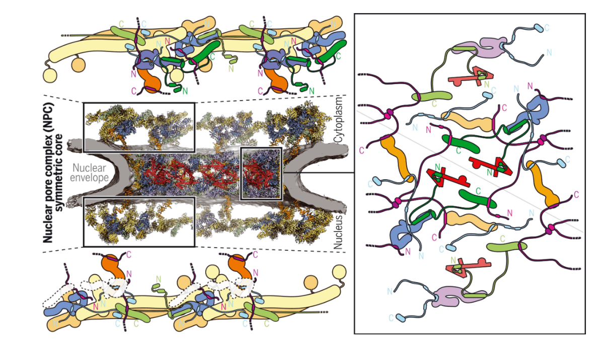 在低温电子断层扫描获得的完整结构中,位于中心的NPC蛋白通常形成一个对称的核心,不仅具有八倍旋转对称的特点。