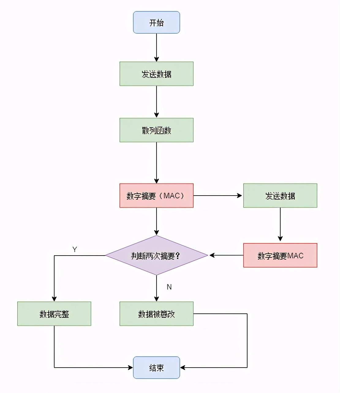 数据的完整性就是防止非法篡改信息,如修改、复制、插入、删除等。在交易过程中,要确保交易双方接收到的数据与原数据完全一致,否则交易将存在安全问题。如果依靠观察的方式来判断数据是否发生过改变,在大多数情况下是不现实的。在网络安全中,一般使用散列函数的方法(Hash函数,也称密码杂凑函数)来保证通信时数据的完整性 。通过Hash算法我们将任意长度的数据通过变换为长度固定的数字摘要(消息认证码,MAC),并且原始数据中任何一位的改变都将会在相同的计算条件下产生截然不同的数字摘要。