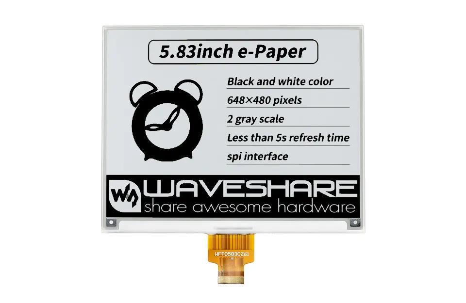在这样的电子产品中,屏幕可能会是硬件成本最大的一块了。这里选用的是微雪基于 SPI 接口分辨率为 648*480 的屏幕。