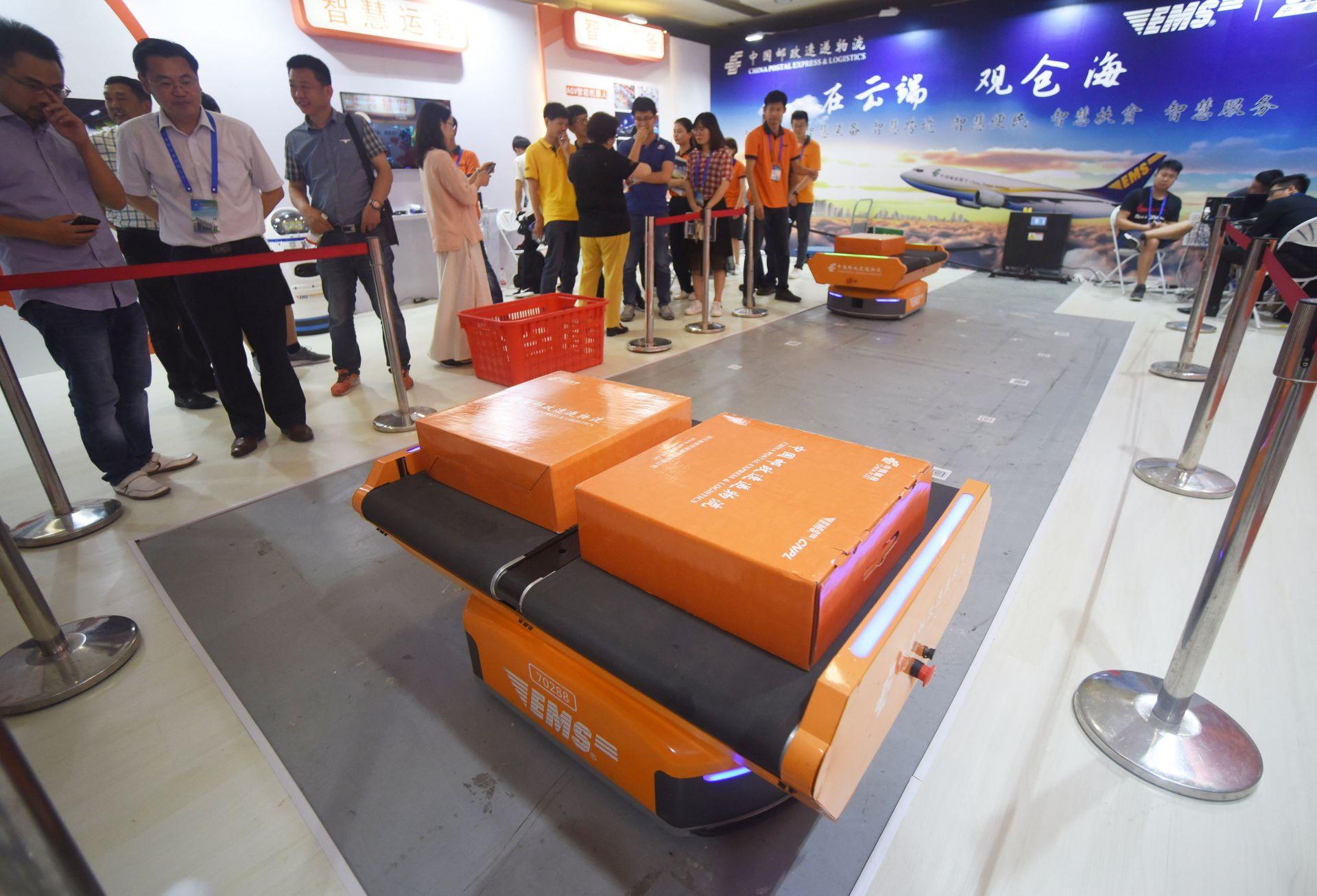 中国邮政的自动化分拣机器人系统。记者 詹松 何晓刚
