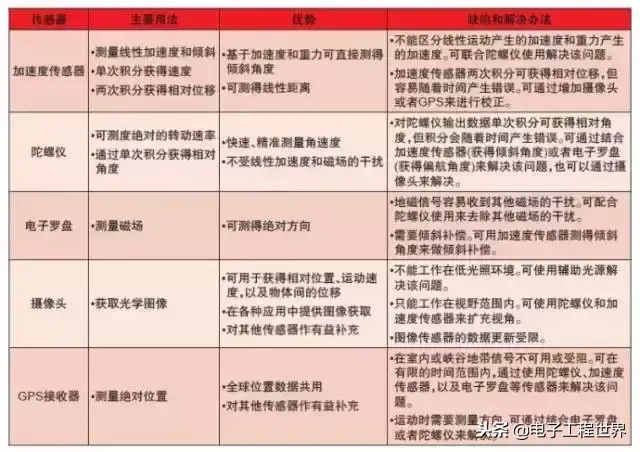 表一:常见传感器使用概况与分析
