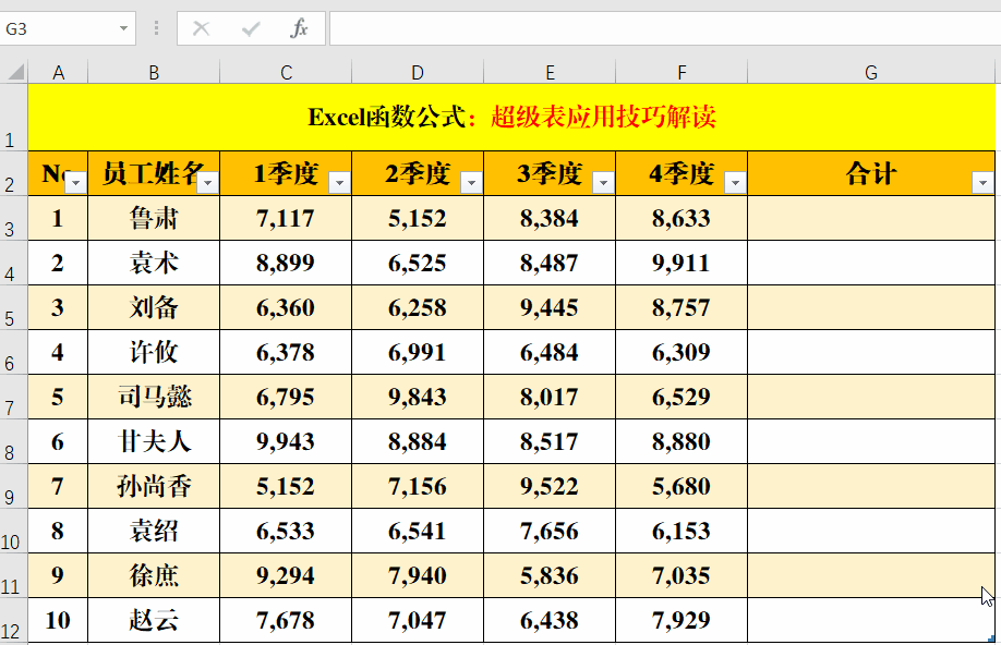 六、Excel 超级表:自动扩展。