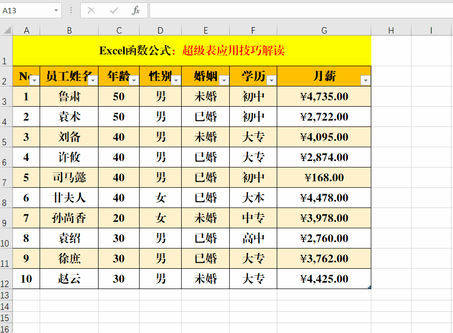 Excel工作表中超级表的9个应用,方便实用,效率翻番