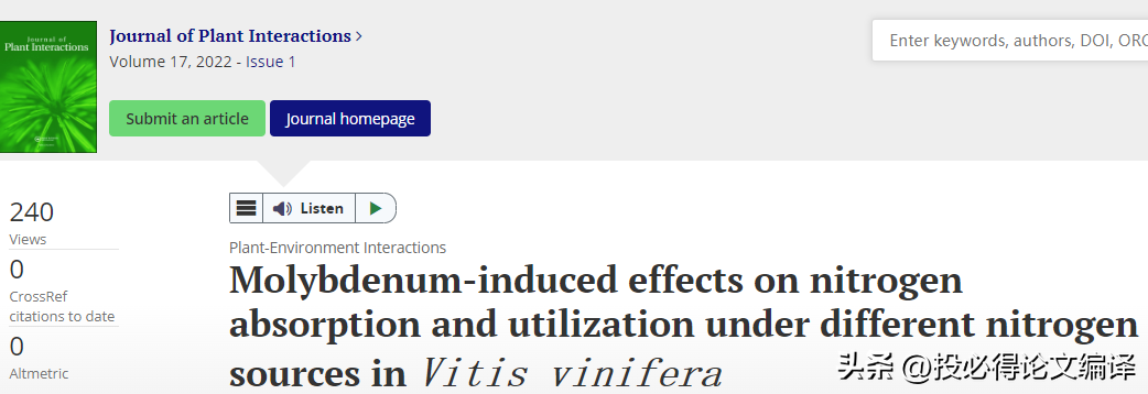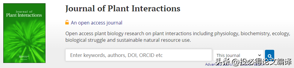 Journal of Plant Interactions 期刊是一本发表非常高效的期刊,分区很高,具体请看下文期刊介绍。