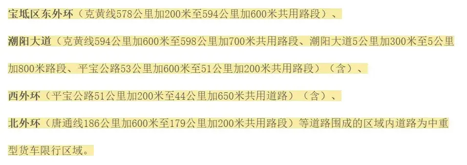 一、宝坻城区以下路段全天24小时内,中重型货车、拖拉机限行 :