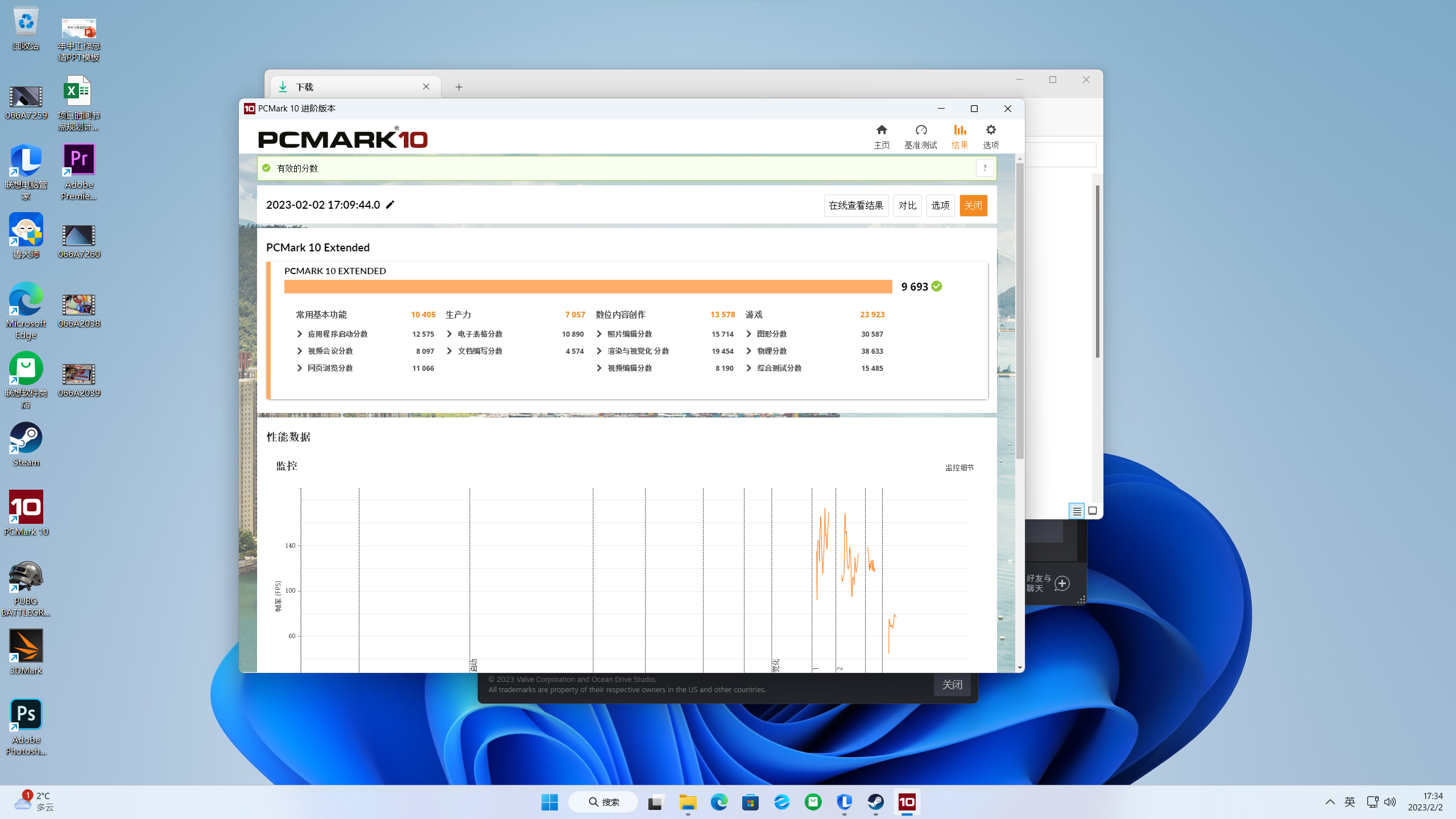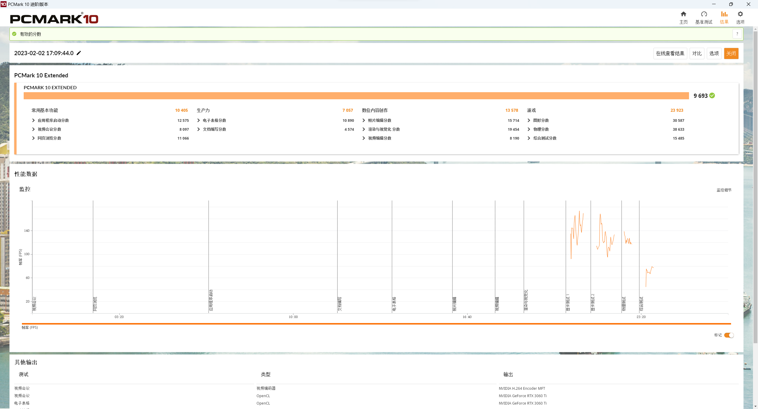 PCMARK 10也是一款电脑整机性能全面基准测试的软件,可以使用基于实际应用和活动的测试来衡量PC的性能,包括浏览网站、视频会议、编写电子表格、编辑照片和视频、玩游戏等任务,并给出一个整体评价分数。在PCMark 10中,这台机器综合得分9693分,有较强的文档、数据处理能力,以及游戏、设计处理性能,作为生产力工具可以说是十分称职。