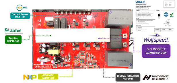 最后,样品的开关频率基于 SiC MOSFET 的整机频率为 16kHz,比传统 IGBT 提高 1-2 倍,死区时间减少一半以上,从而降低了系统补偿的难度,实现了更好的输出电流波形。该系统显着降低了人耳可闻的电磁噪声,具有更好的NVH(Noise(噪声)、Vibration(振动)和Harshness(舒适性)),可降低隔音系统的设计难度要求和成本。