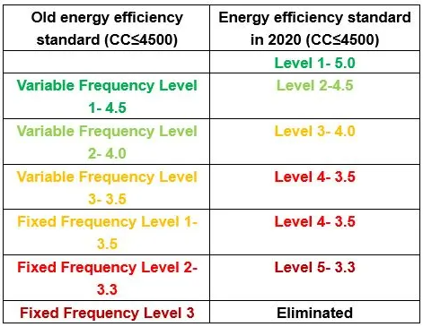 图1 暖通空调新旧能效标准对比