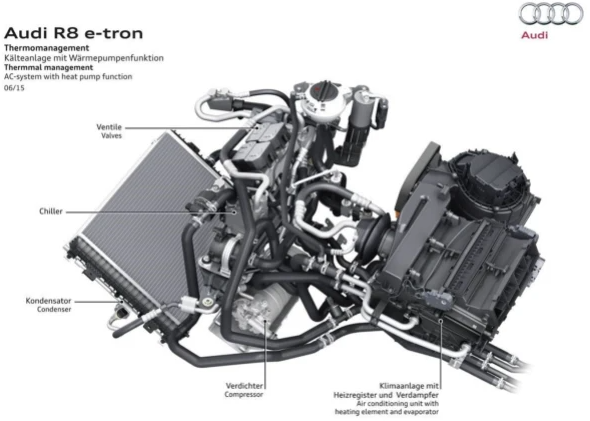 图9 奥迪R8 e-tron电动车热泵空调系统(图片来自网络)