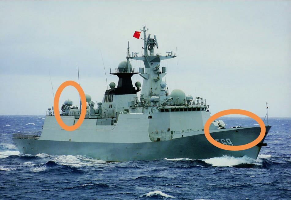 这两张图片上就是我军新式战舰,特别是054A上仍然装备的FQF3200型6管252㎜“反潜火箭发射器”,相对于目前的“反潜火箭助推鱼雷”(反潜导弹)和舰载轻型鱼雷,“反潜火箭发射器”确实有些落伍,但是它仍然是非常实用的“反潜利器”,经过现在技术的改进,反潜火箭弹射程已经提高到了10㎞左右、反潜深度达到了450米,这个射程和深度对于攻击在近海活动的常规潜艇甚至核潜艇是非常有效的!因为受大陆架的延伸,我国近海100海里海域内水深都在200–500米,在这种浅水区不但敌方潜艇活动受限制(越浅的区域,水下地形越复杂),大型反潜弹药使用也受限制(说白了就是施展不开),只能使用轻鱼雷和反潜火箭弹,当敌潜艇被声呐锁定以后,反潜舰船贴近攻击时“反潜火箭弹”要比轻鱼雷使用方便性和打击效能更高!所以基于这种考虑,我军新一代部分战舰还是有必要保留“反潜火箭发射器”的。