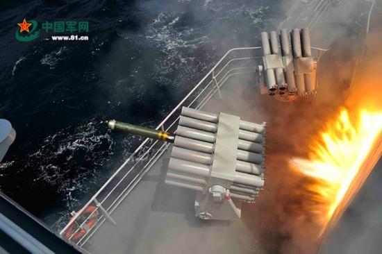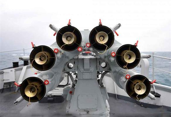 第二点,反潜火箭弹可以反击来袭的敌方鱼雷,由于当前的反舰鱼雷:航行噪音小、智能化高、反舰发射深度高,这大大的增加了军舰反击鱼雷的难度,外军普遍采用“鱼雷诱饵”,但是使用“诱饵”的效果未必很好,主要问题是现代反舰鱼雷使用“线导”或者“自导”,可以由母艇或者自身携带的声呐辨别“诱饵”与军舰本身发出的噪音差异,就算暂时辨别不了,鱼雷可以进行环形自航绕开“诱饵”后,发现舰船的噪音以后再次攻击…总之,“诱饵”这种软杀伤有其自身缺陷!而“反潜火箭弹”则硬杀伤,战舰的反潜部门发现鱼雷来袭以后,马上进行反潜火箭发射准备,定位鱼雷的航线以后,实施反鱼雷…将鱼雷炸毁要比它在射程以内继续有威胁强!