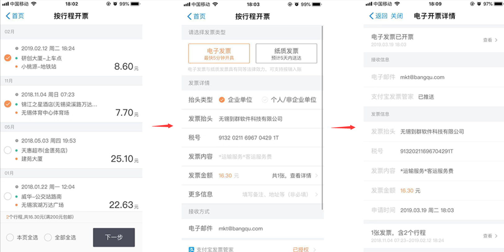 电子发票 公共平台怎么下载发票_快账二、发票开具后在详情中有两个按钮,一种是直接下载PDF发票到手机文件,另一种是直接以文件的形式发送到邮箱当中1、查看发票点击直接跳转手机自带浏...