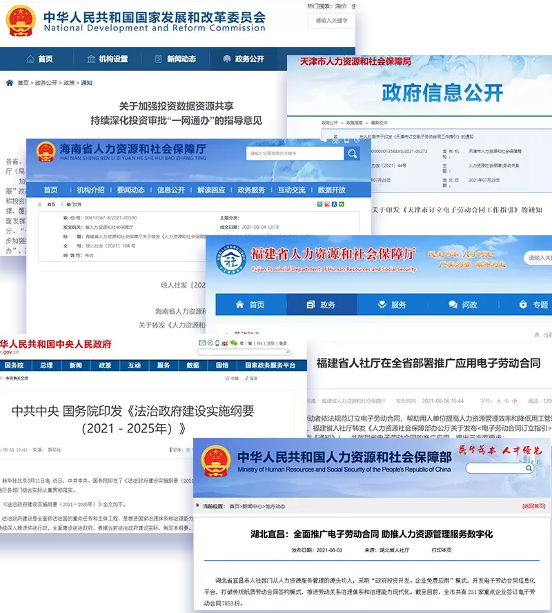 近期,福建、海南、山东、天津等地人社部门,国家发改委、中共中央国务院陆续出台了电子劳动合同、电子印章等相关的各项法规及政策,体现了政府对电子合同的高度重视。