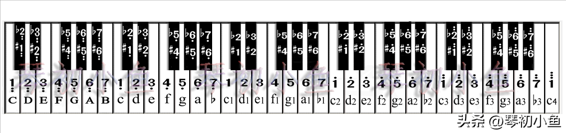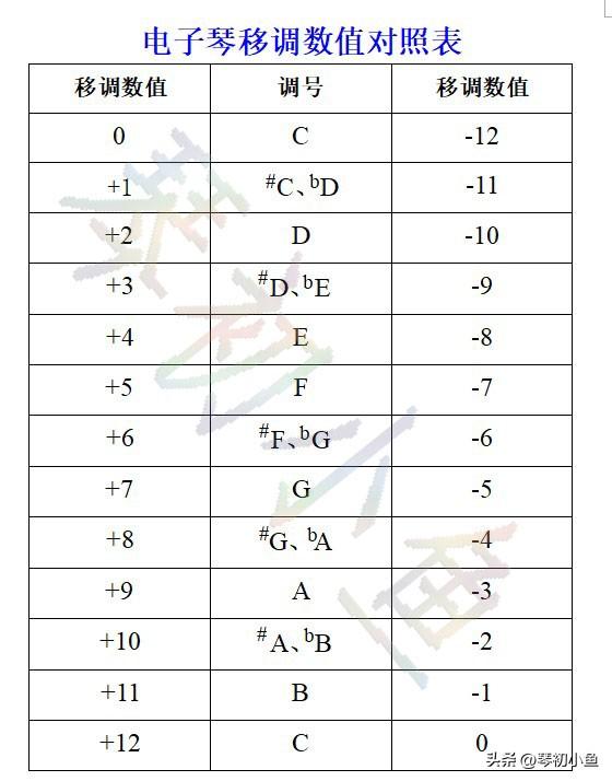 如果嫌推算移调数值需要数来数去的比较麻烦,那小鱼也帮大家准备了一张已经推算好的移调数值对照表: