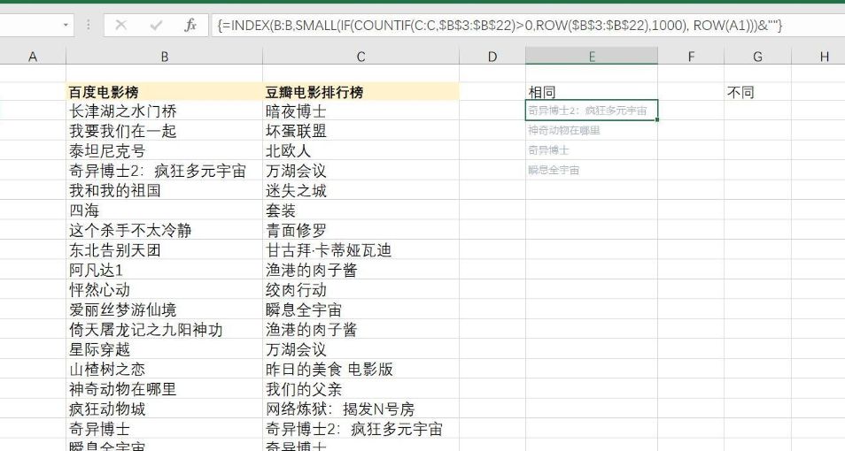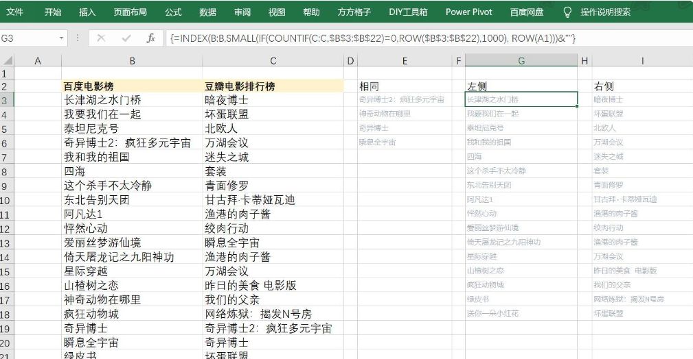 =INDEX(左列,SMALL(IF(COUNTIF(右列,左列数据区)>0,ROW(左列数据区),大于总数据的数字),ROW(A1)))