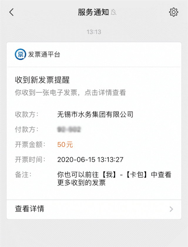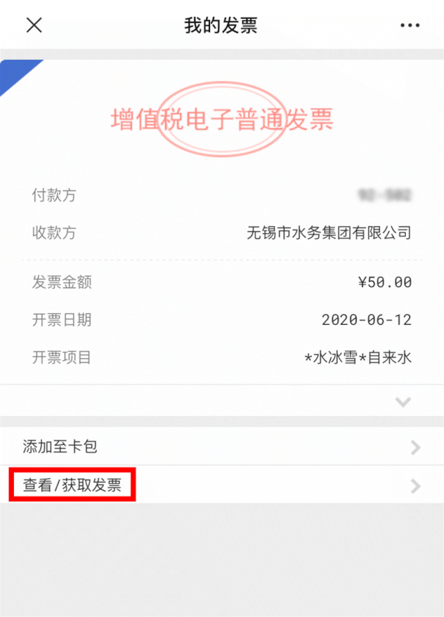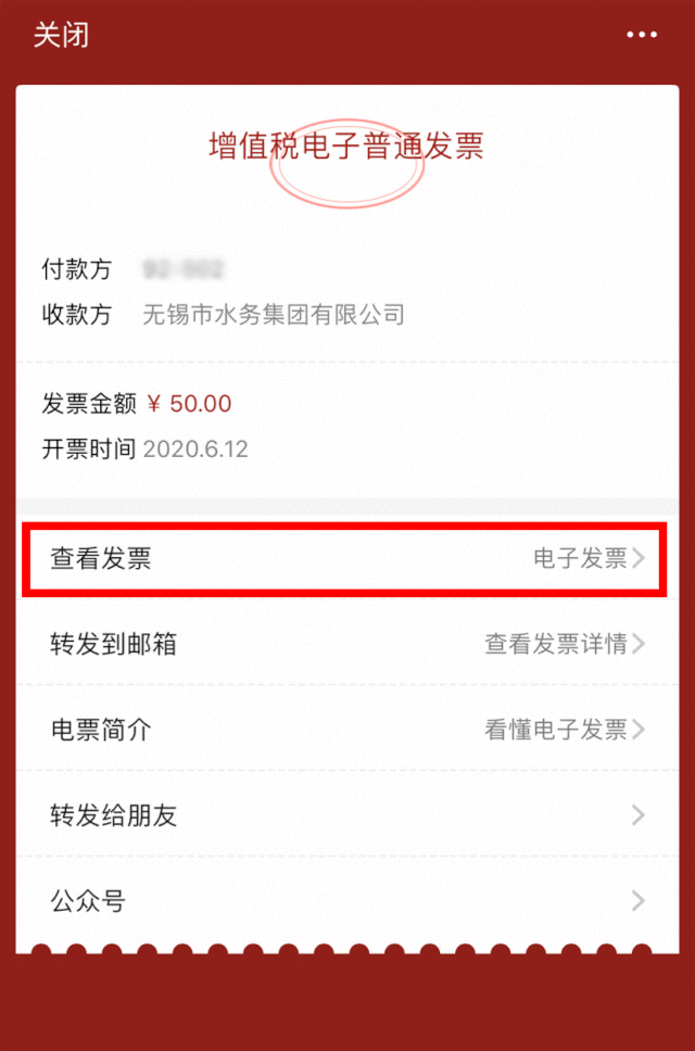 2、登录“厦门水务96303”微信公众号打开发票二维码;