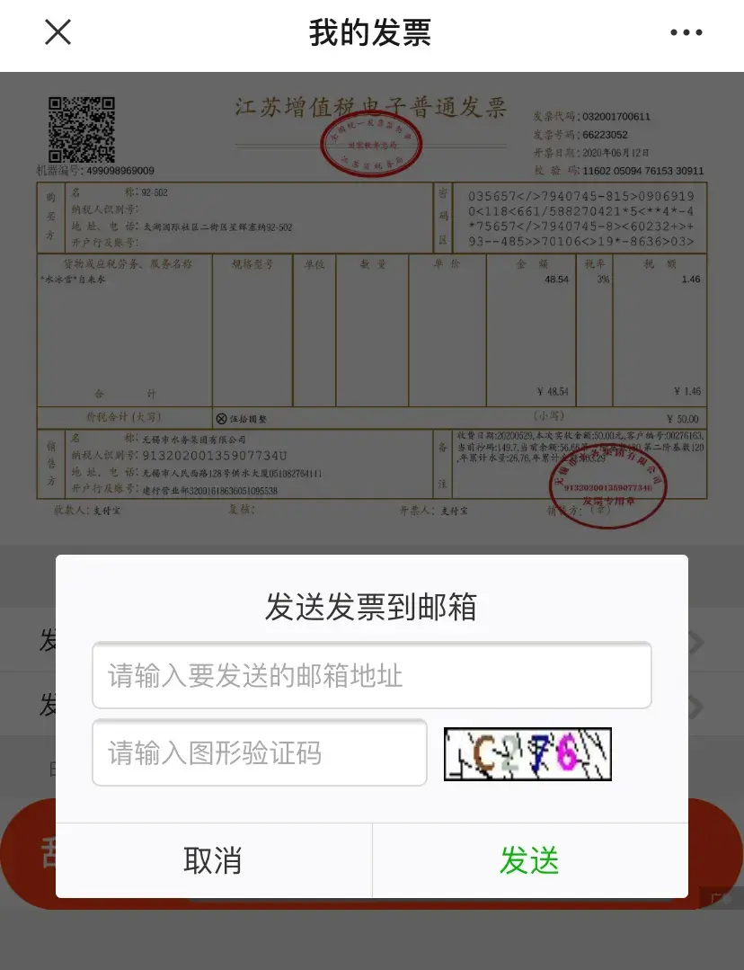 输入邮箱地址、验证码,就可以去邮箱查看发票啦~