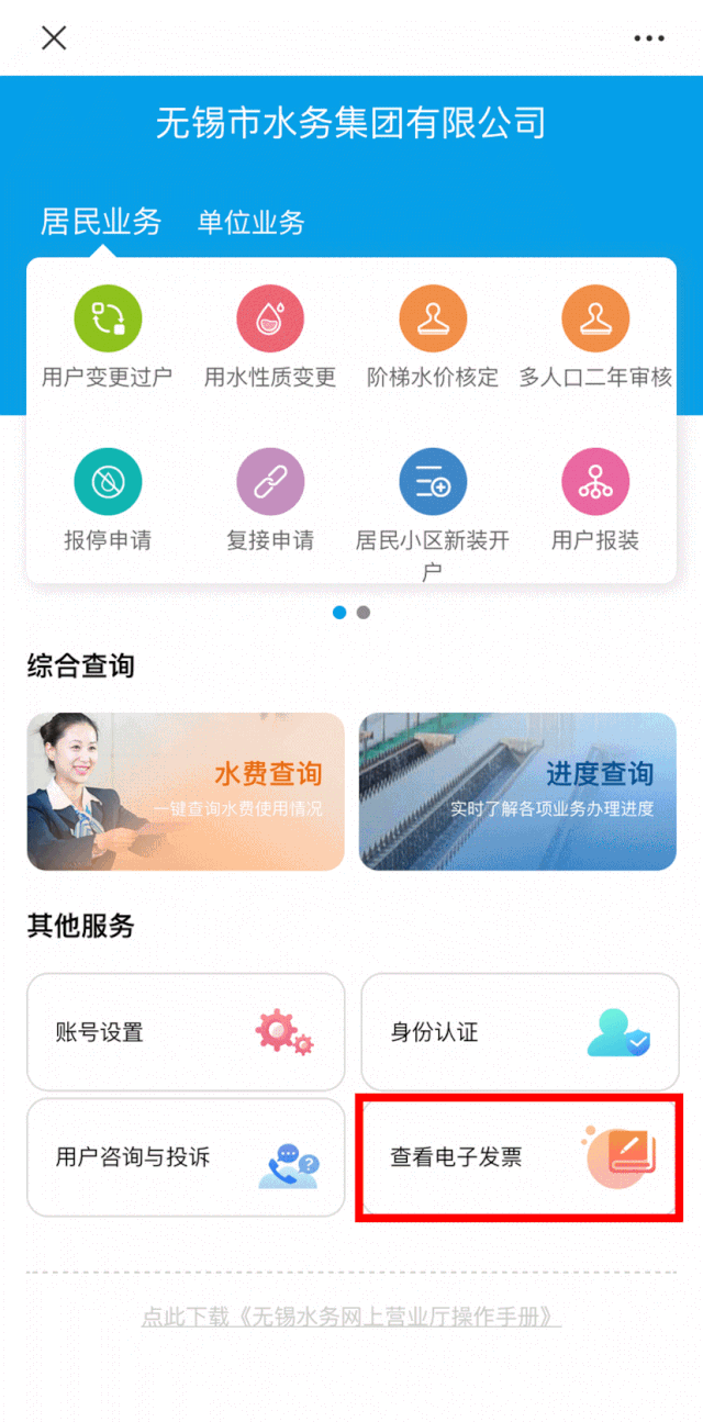 点击【无锡 水务 】公众号,进入:网上营业厅