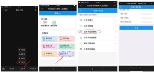 例→方法②:进入“榆林人社”微信公众号→点选“我要办”→点选“社保卡”栏目→点选“社保卡密码修改”(见下图)