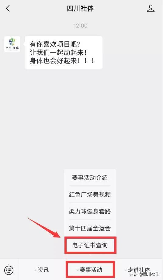 点击底部赛事活动 栏目,找到电子证书查询 ,点击进入证书查询系统