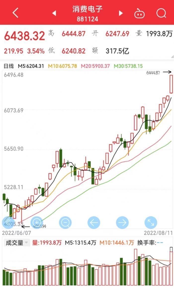 截止8月11日收盘,消费电子板块涨幅3.70% ,光弘科技、领益智造、漫步者、歌尔股份、科森科技、胜利精密摘得首板涨停,国光电器2天2板,传音控股涨幅15.97%,立讯精密涨停。
