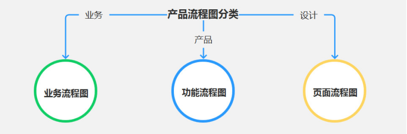 按照产品内容描述的维度,将流程图分为:业务流程图、功能流程图与页面流程图等。