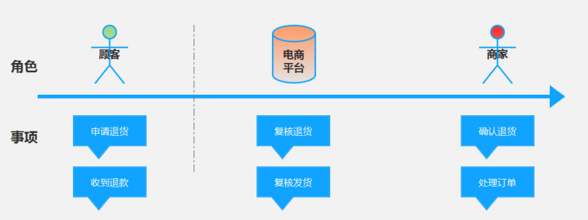 以商品退货为例,我们从角色和事项两个维度梳理业务,了解整个事件的操作流程。