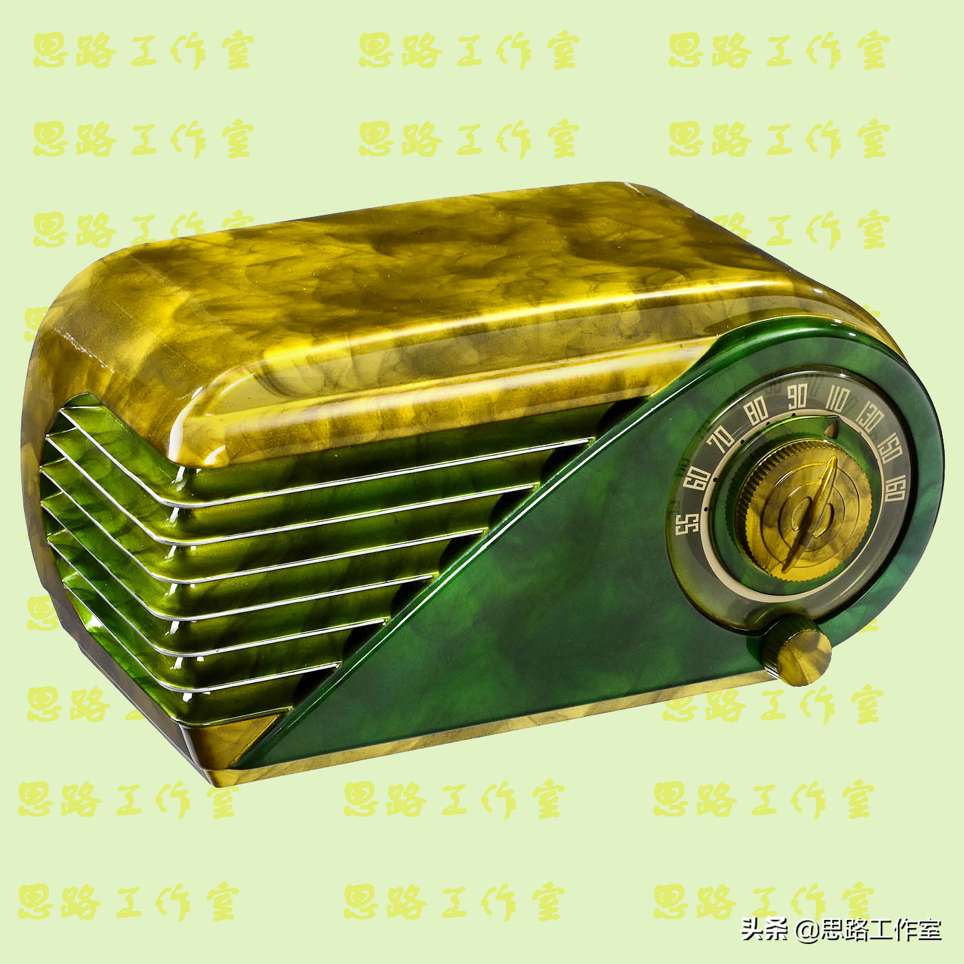 卡塔林风格的法恩斯沃思装饰艺术“子弹”收音机。1948年美国法恩斯沃思电视广播公司生产。GT-050 型,五电子管,仅中波,电源为市电105-125 伏,集成扬声器。