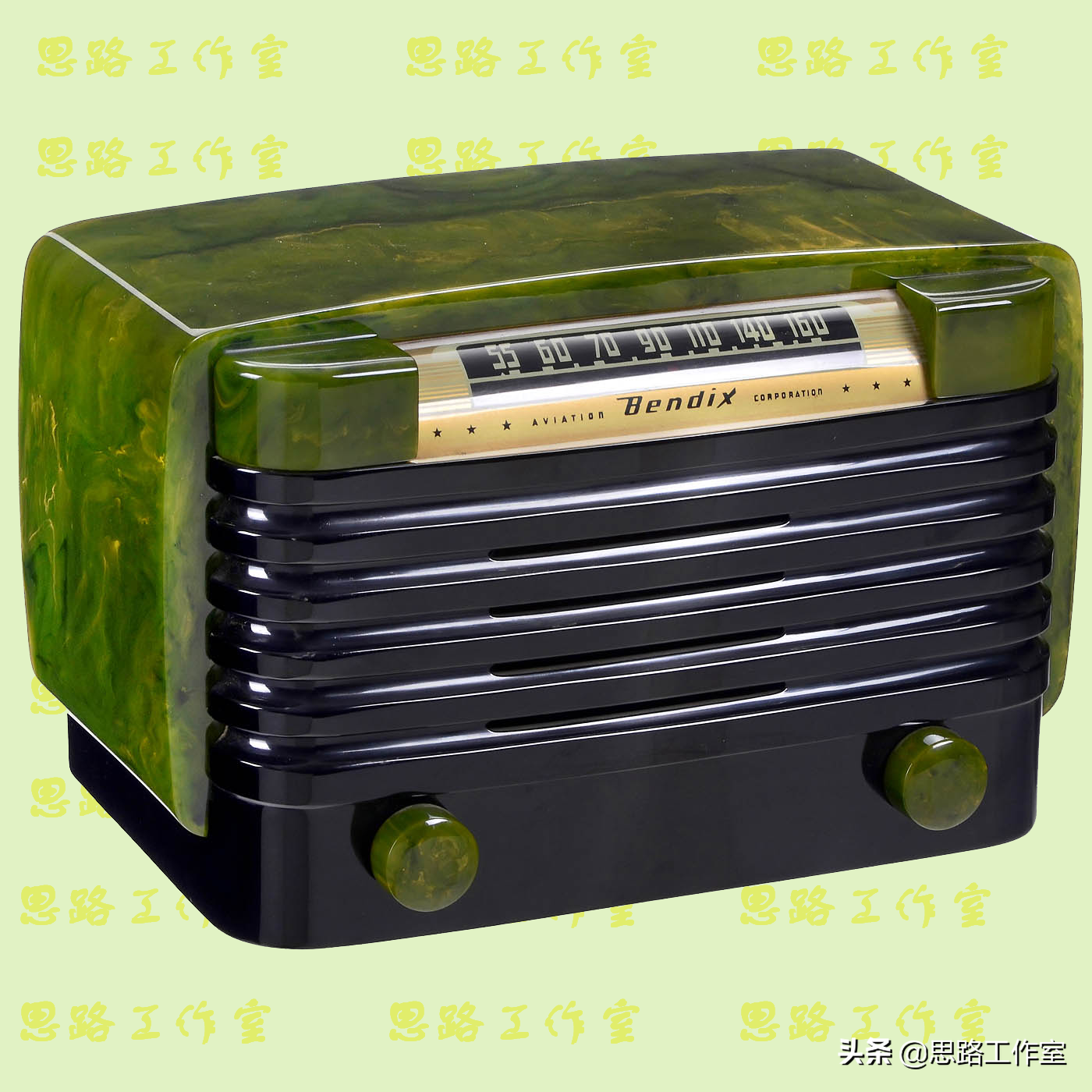 Bendix Art-Deco 收音机,1946年美国巴尔的摩本迪克斯无线电分部生产,型号 526C,五电子管,仅中波段,电源为市电115 伏,集成动态扬声器。