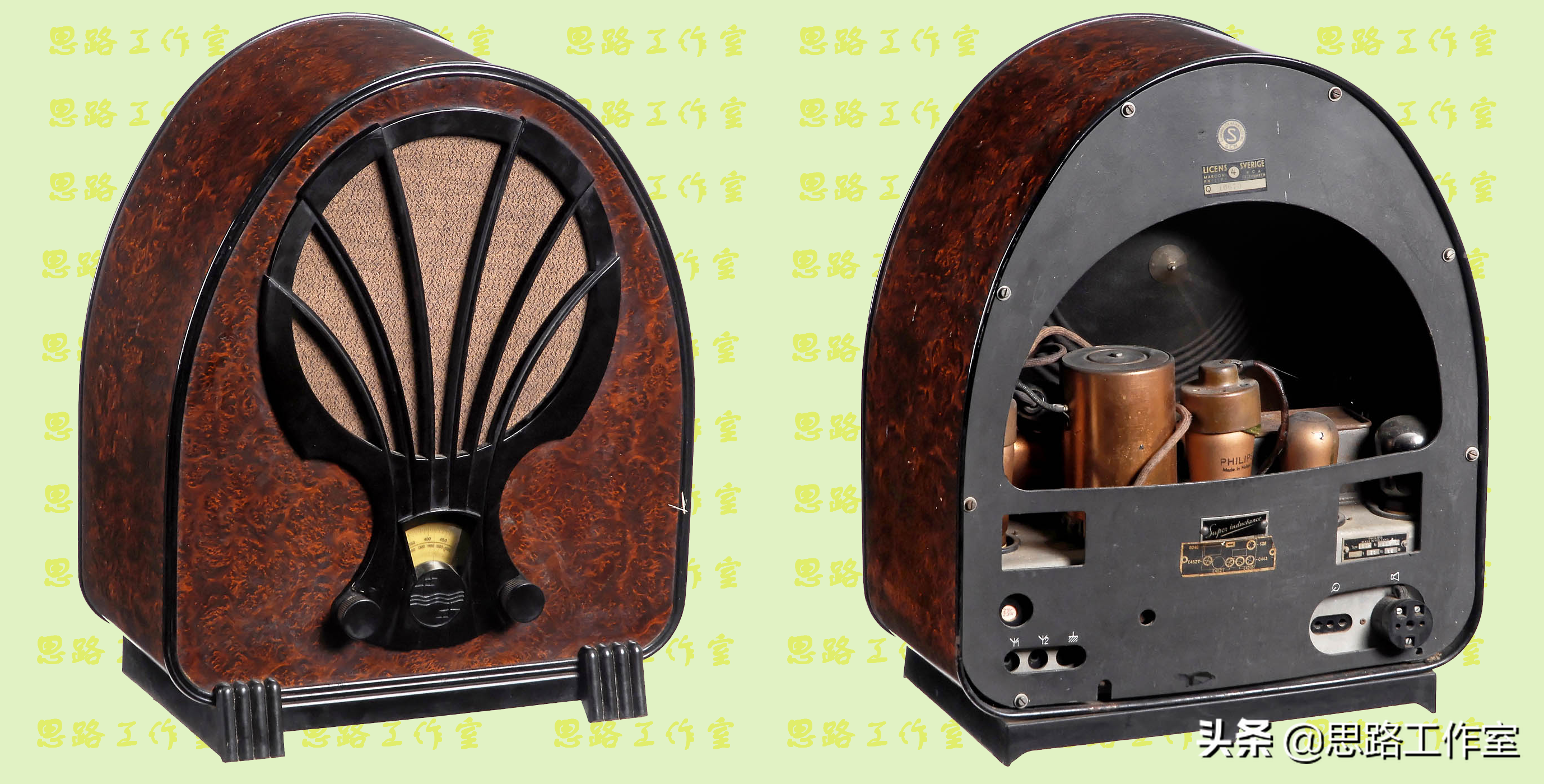 飞利浦830收音机,五电子管,长波和中波波段,动圈扬声器,胶木外壳。
